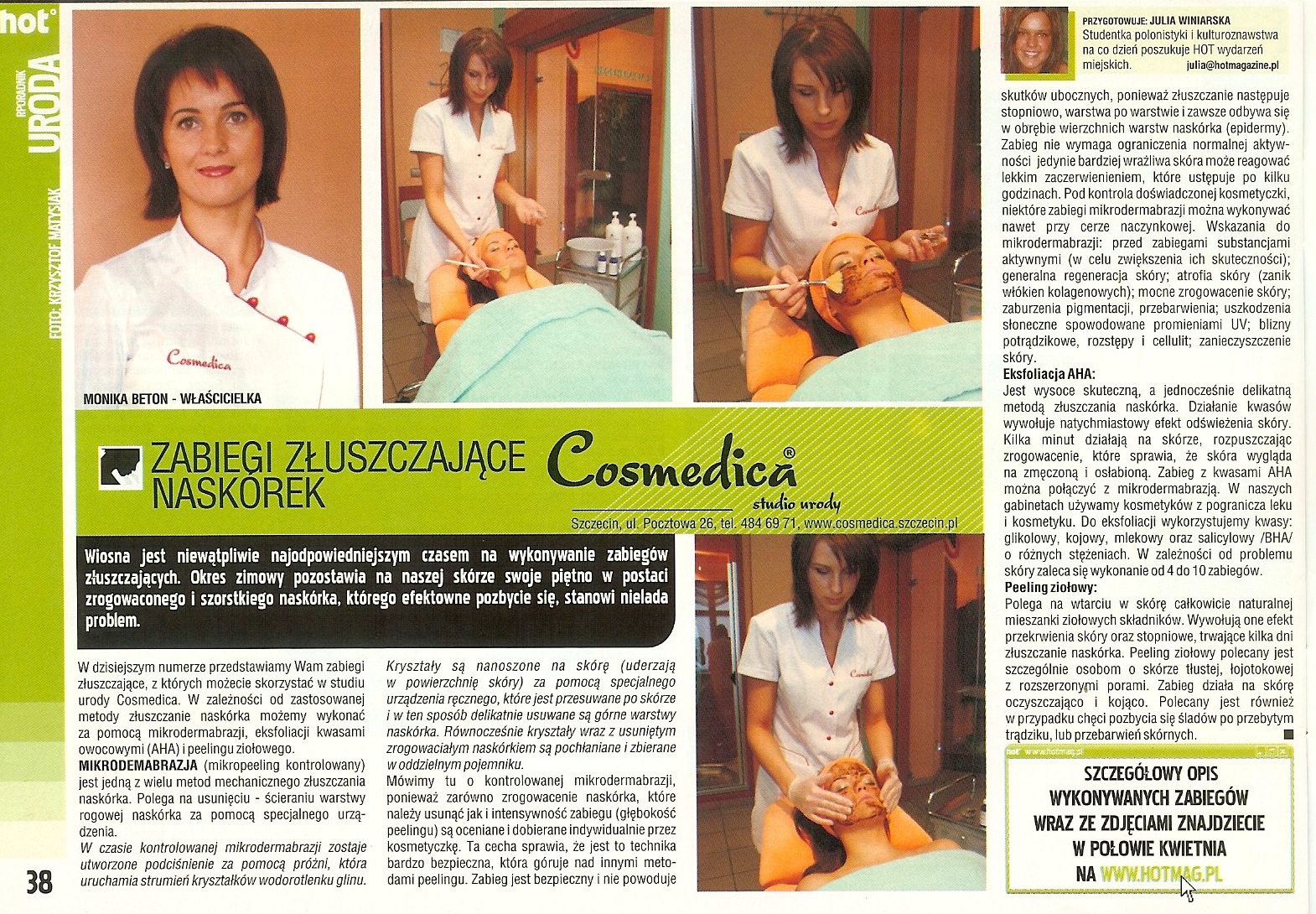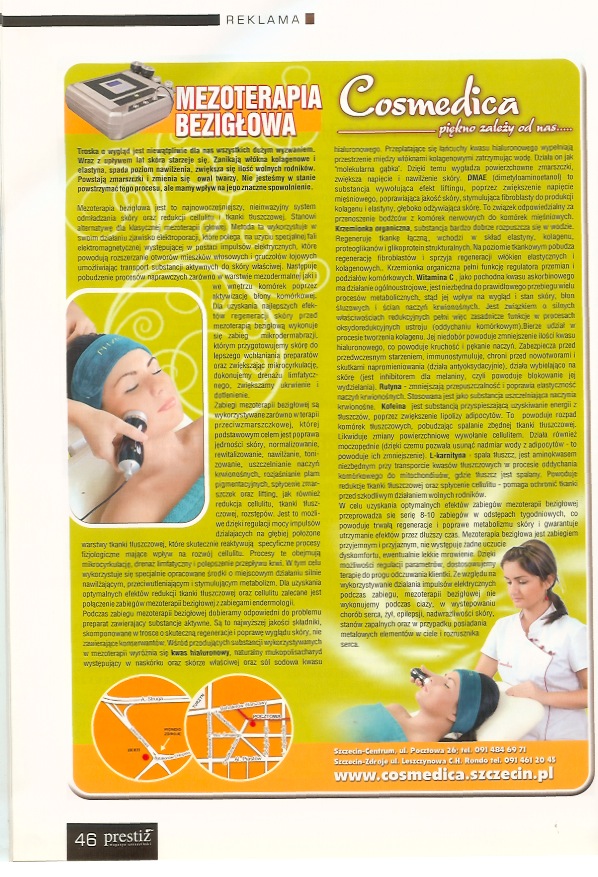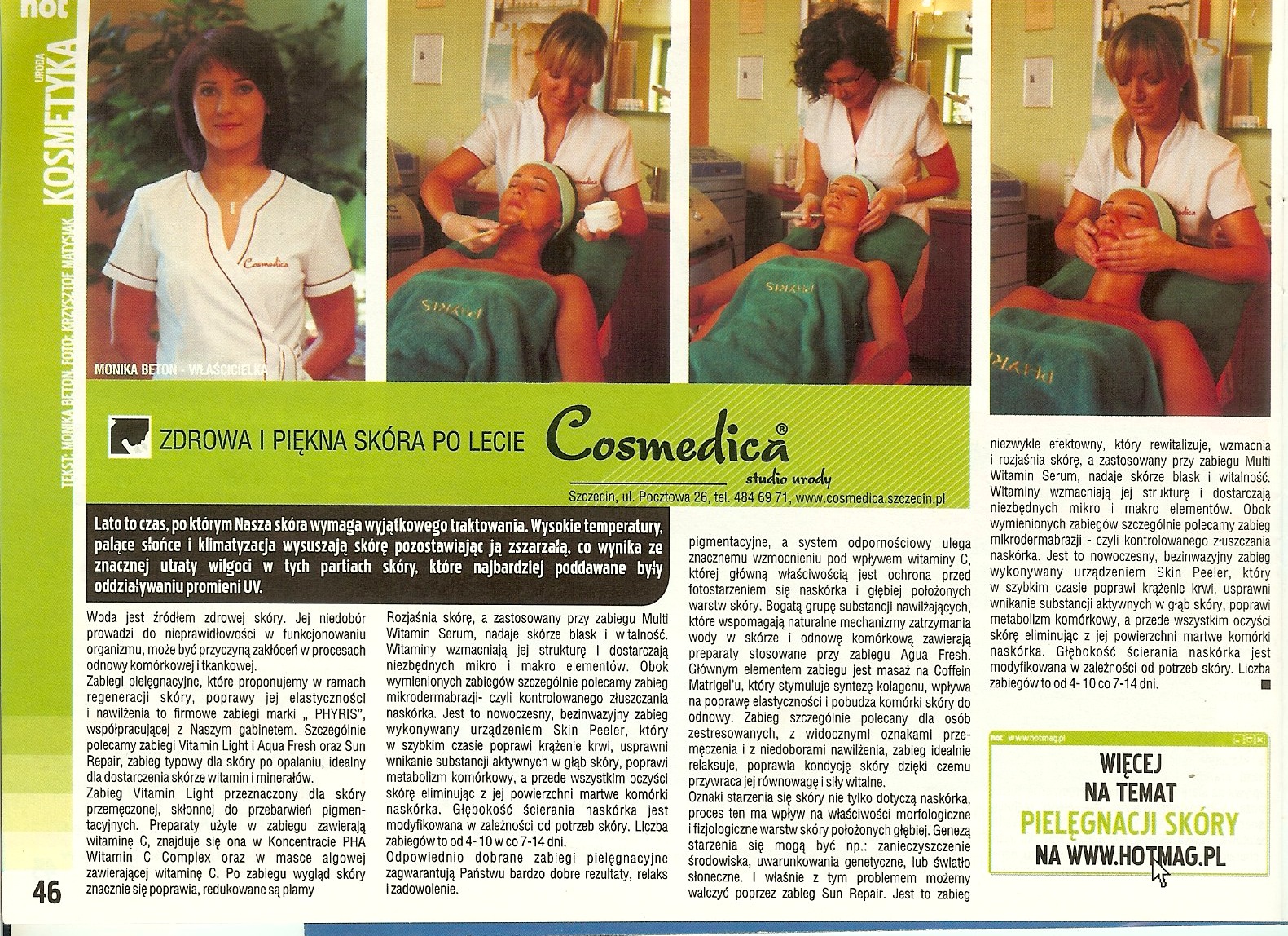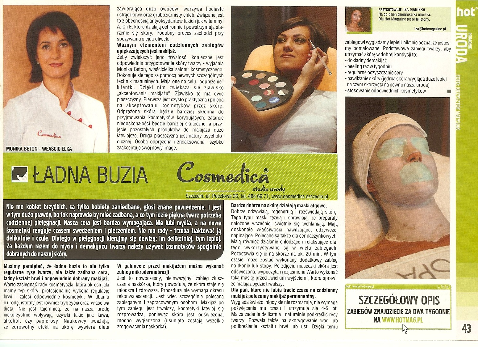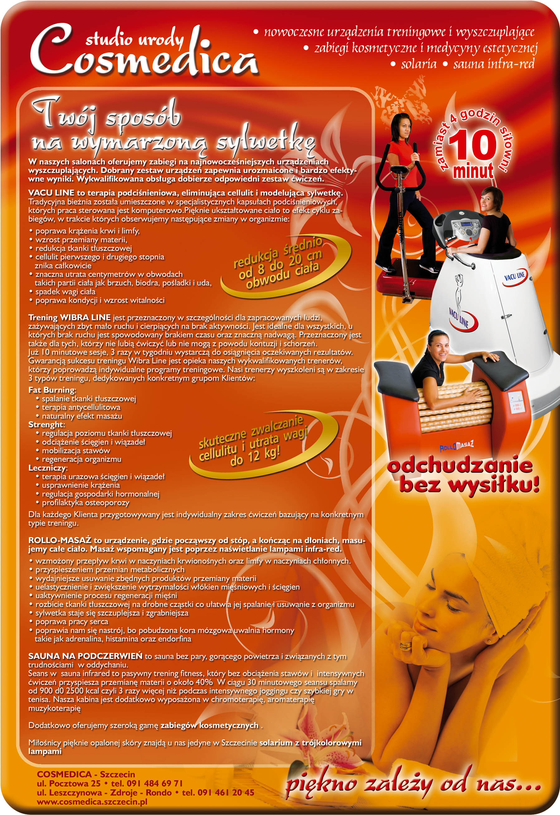 Cosmedica – Gabinet Kosmetologii Estetycznej, mieszcząca się w centrum i na prawobrzeżu Szczecina, powstała w 2003 roku z zamiarem świadczenia najwyższej jakości usług w dziedzinie kosmetologi, medycyny estetycznej, wyszczuplania, opalania oraz innych dziedzinach mających na celu upiększanie i poprawę samopoczucia oraz zdrowia naszych klientów poprzez estetyczny i zdrowy wygląd skóry.
