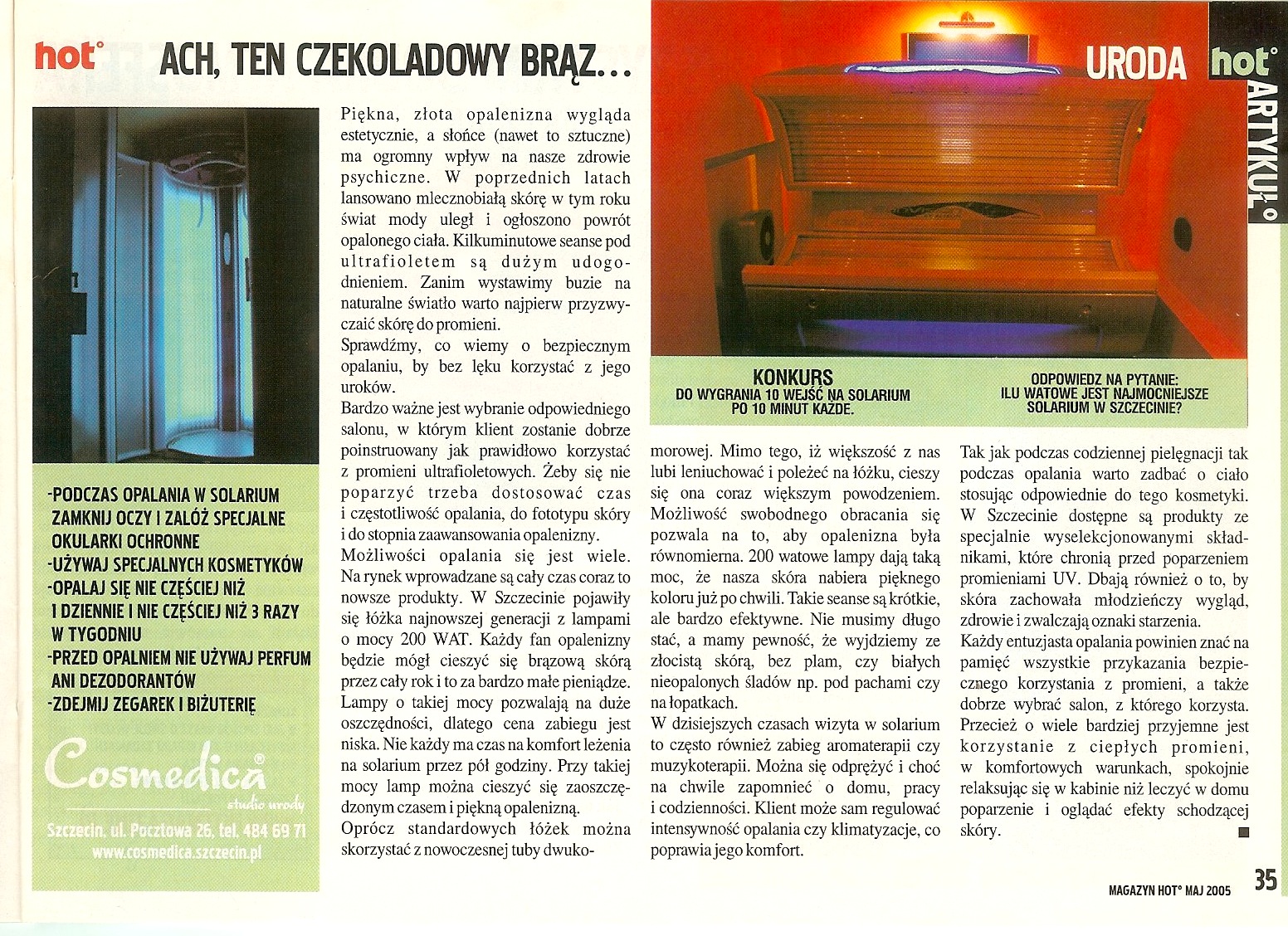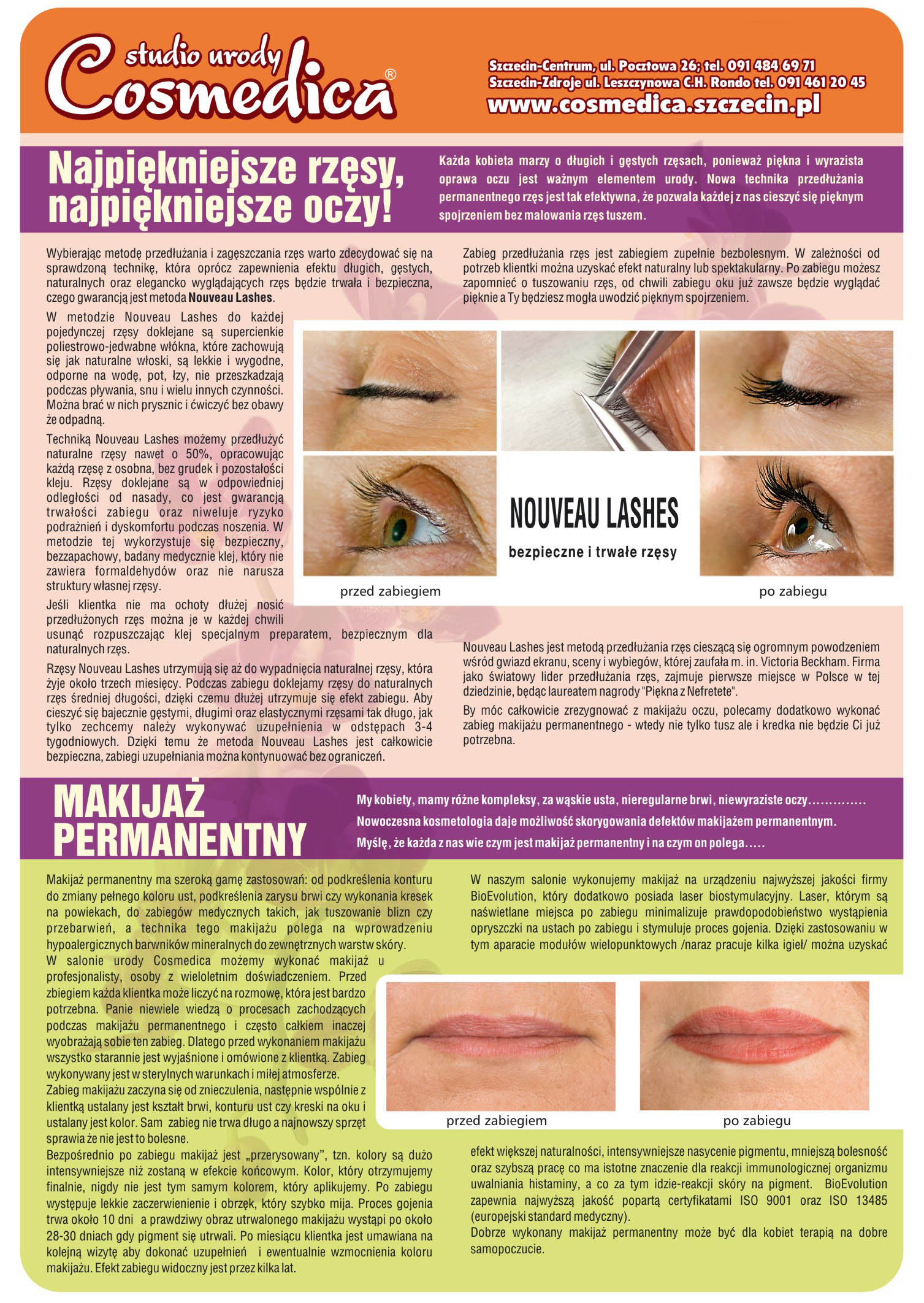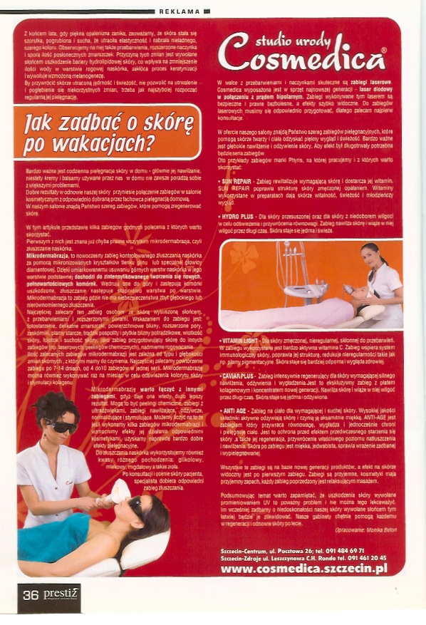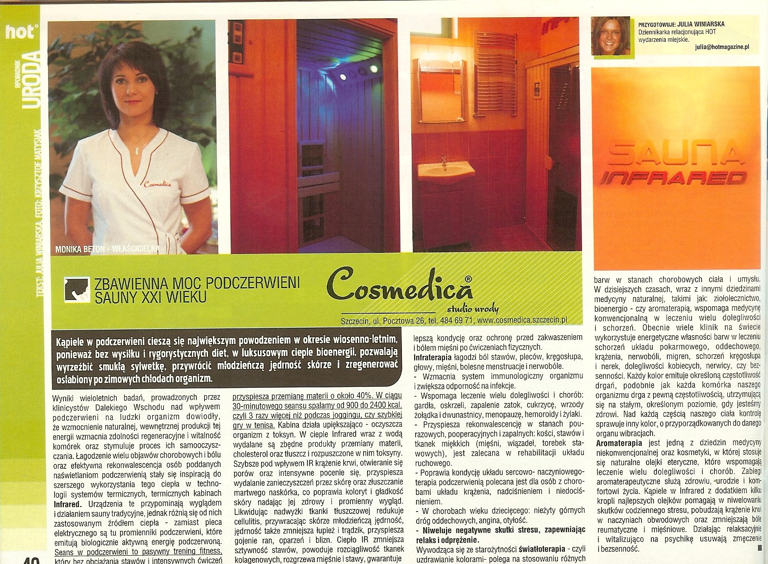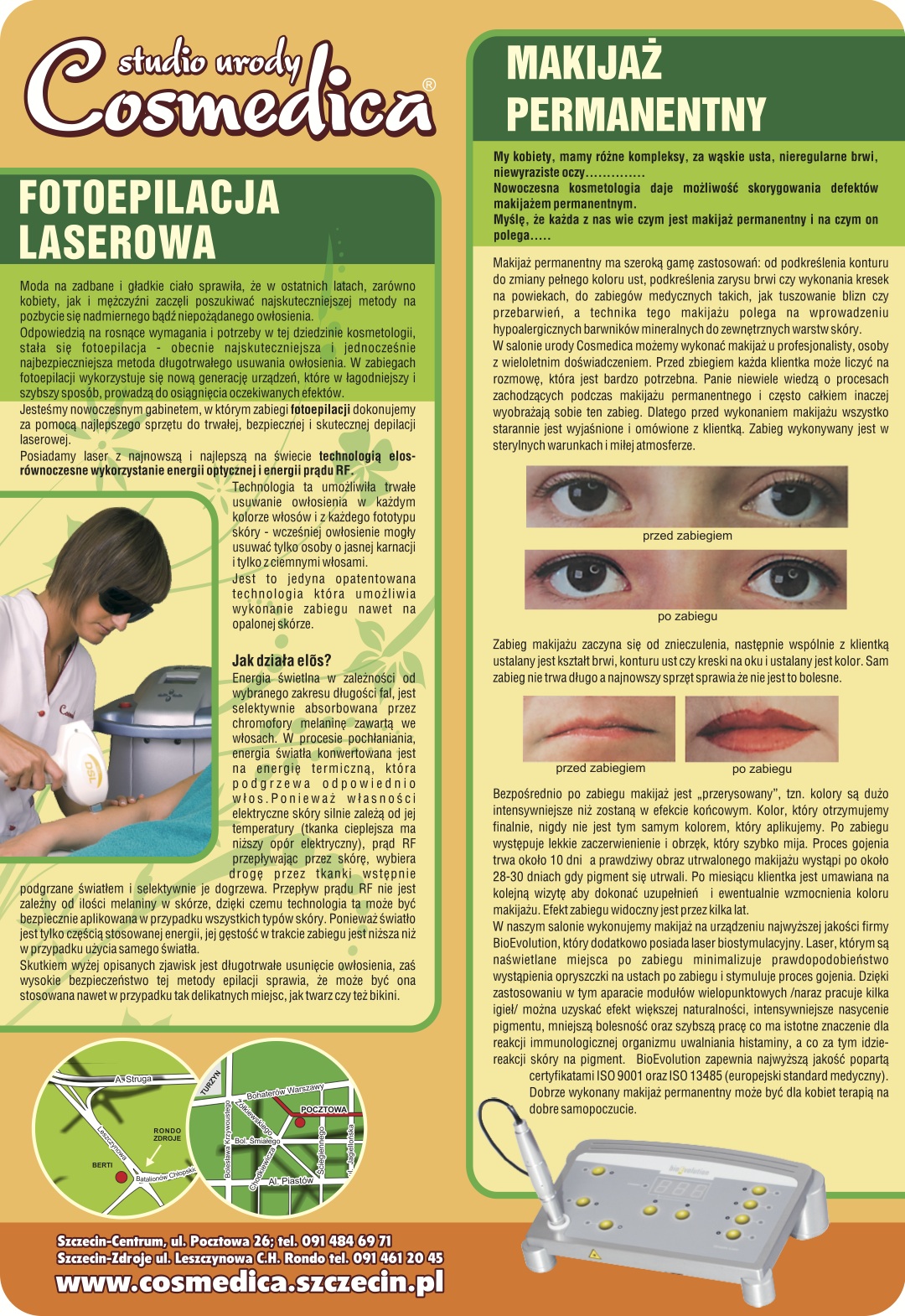 Cosmedica – Gabinet Kosmetologii Estetycznej, mieszcząca się w centrum i na prawobrzeżu Szczecina, powstała w 2003 roku z zamiarem świadczenia najwyższej jakości usług w dziedzinie kosmetologi, medycyny estetycznej, wyszczuplania, opalania oraz innych dziedzinach mających na celu upiększanie i poprawę samopoczucia oraz zdrowia naszych klientów poprzez estetyczny i zdrowy wygląd skóry.