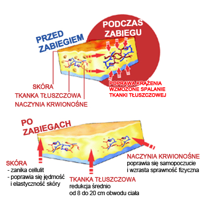 - Cząsteczki tłuszczu pobierane są z okolic dotkniętych cellulitem – uda, pośladki, brzuch, a więc z miejsc gdzie wymuszono zwiększenie ukrwienia.